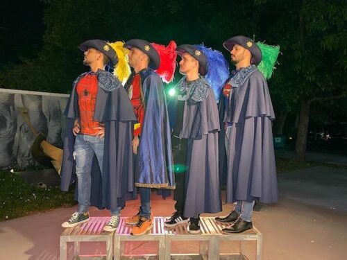 “Los Mosqueteros y una princesa moderna”, con Andy Forero, Rafael Farello, Bruno Gatti y Joel Rod. Fotografía: Eriberto Jiménez (cortesía de Creation Art Center)