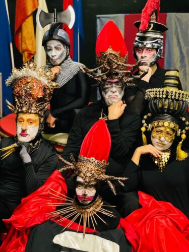 El elenco de “Ubú Pandemia”: Julio Rodríguez, Gerardo Riverón, Yani Martin, Danly Arango, Andy Barbosa e Ysmercy Salomón. Fotografía: Pedro Balmaseda (cortesía de Teatro Avante)