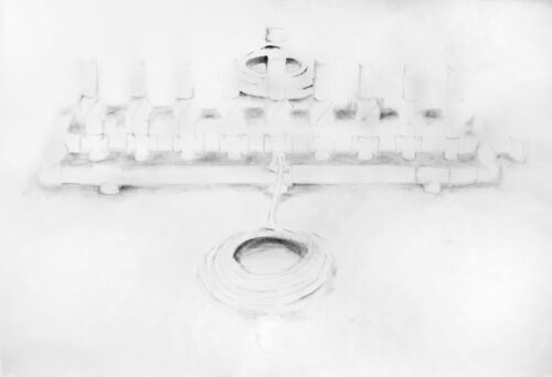 Comisionada por la escritora y curadora independiente y colega de larga data de Checa, Jean Chung, “Entre dos soles” presenta un archivo de dibujos, instalaciones y actuaciones en curso del artista. Su infancia en Cuba y las “herramientas” que usa que recuerdan al movimiento de Arte Povera, Checa basa su trabajo en una tradición de improvisación con objetos cotidianos. Las esculturas de Checa en esta muestra echan mano a materiales utilitarios —tuberías de PVC, aspiradoras de agua y yeso— para imitar las condiciones laborales en varios sitios en los que ha trabajado en Miami. Las piezas y actuaciones utilizan una estética abstracta para evitar explotar y “retraumatizar” a los trabajadores cuyas experiencias él retoma.