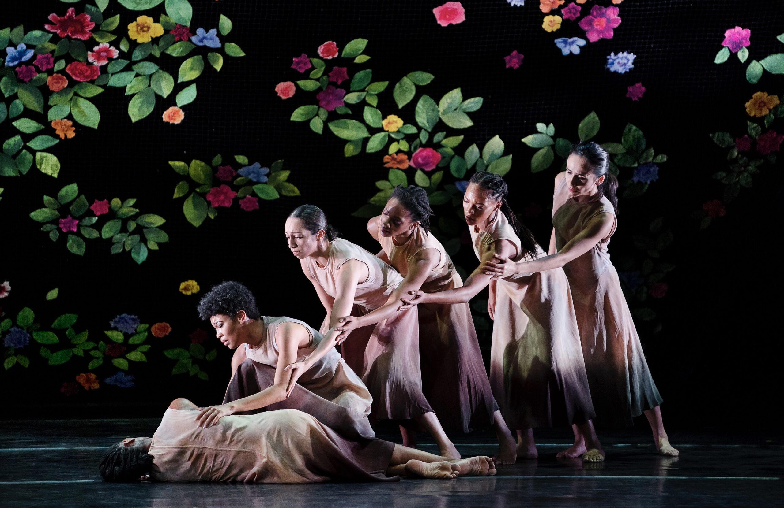 La pieza central del programa del sábado 3 de febrero (20h00) es “Ode”, del ex-coreógrafo residente de Ailey y nativo de Miami, Jamar Roberts. Interpretada por un elenco de seis personas, la pieza ha tenido elencos masculinos y femeninos, pero el público de Miami verá solo el elenco femenino. Con un precioso telón de fondo floral de Libby Stadstad y la iluminación de Brandon Stirling Baker, esta pieza de 17 minutos se estrenó por primera vez en el City Center Theater de Nueva York en 2019 y utiliza una inquietante obra para piano titulada “(Sweet) Malcolm (Part 1 – Memories and Gunshots)”. Su autor es el pianista y compositor Don Pullen.