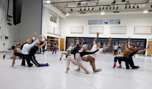 Los bailarines de Miami City Ballet ensayando “Análogo”, coreografía de Margarita Armas. Fotografía: Alexander Iziliaev (cortesía de Miami City Ballet).