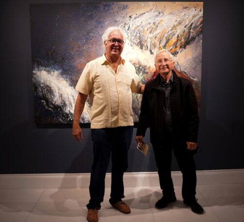 De izquierda a derecha, Arturo Mosquera y Baruj Salinas en la inauguración de la muestra “Baruj Salinas: 1972-2022” (Museo Americano de la Diáspora Cubana, Miami, 2022). Fotografía: Ismael Gómez Peralta (cortesía).