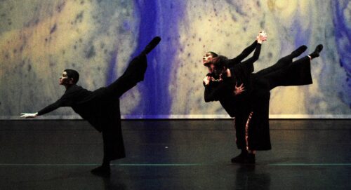 Isaiah González (sosteniendo a Meredith Barton) y Amy Trieger en “ABRACADABRA”, coreografía de Brigid Baker. Fotografía: Karime Arabia (cortesía de brigid baker wholeproject).