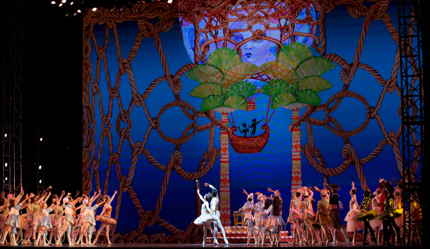 Sin faltarle a Balanchine, pero ajustándose a la necesidad de tener menos personas en escena y para darle mayor continuidad a la acción, se le ha agregado una secuencia en dibujos animados que ilustra el viaje de los pequeños protagonistas de la casa de los Stahlbaum a la Tierra de los Dulces, ahora localizada en las playas de Miami, frutas tropicales incluidas.