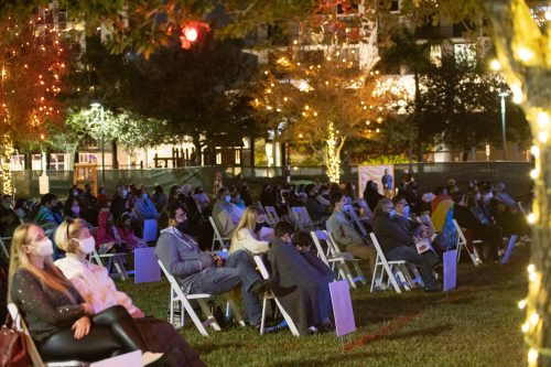 El público enmascarado distribuido en grupos socialmente distanciados con un máximo de 4 personas la noche dedicada a socorristas y trabajadores esenciales. Fotografía: Anna Barnat (cortesía)