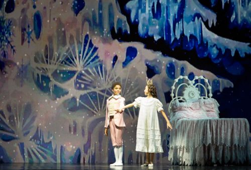 Hannah Fischer y Chase Swatosh como el Hada de Azúcar y su caballero la noche del ensayo general con público del jueves 17 de diciembre. Fotografía: Alexander Iziliaev (cortesía)
