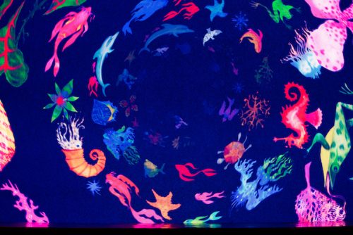 La puesta en escena al aire libre que ahora nos ocupa está basada en esta última, pero enriquecida para la ocasión con nuevas animaciones digitales de Harrington e ilustraciones adicionales de Rubén Toledo.