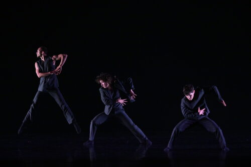 Robert Kwaku Dunkley, Ciar Wild y Sam Shterenlikht, de Rambert School Company, en “Be no End to”. Fotografía: Simon Soong (cortesía de Miami Hispanic Ballet / IBFM).