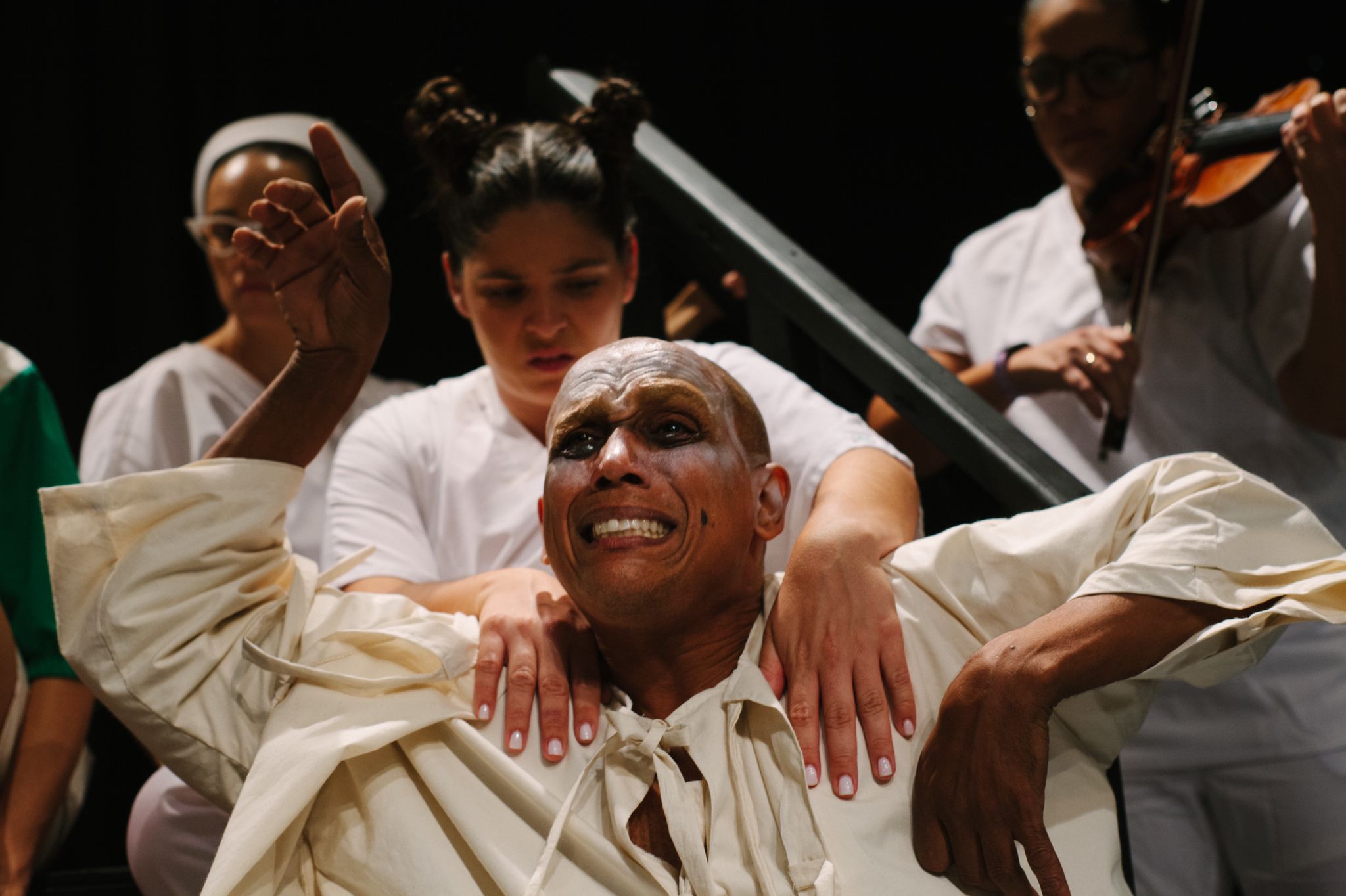Eso me llevó a pensar en cómo Shakespeare incluía en reiteradas oportunidades la locura en personajes de sus principales obras. Es a partir de esos personajes que nace ‘Shakespeare in Madness’ en 2018, una segunda propuesta con los mismos pacientes del sanatorio y la idea central de una competencia actoral que les regresaba la oportunidad de defender personajes dentro de una “supuesta” actividad teatral en el sanatorio. En este caso sosteníamos el mismo núcleo dramatúrgico: La directora de un pabellón psiquiátrico que defiende el poder sanador del teatro para sus pacientes y el poder del teatro como terapia.