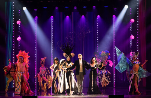Un momento espectacular del musical “The Cher Show”. Al centro, de izquierda a derecha: Ella Perez como Babe, Catherine Ariale como Lady, Tyler Pirrung como Bob Mackie y Morgan Scott como Star. Fotografía: Meredith Mashburn Photography (cortesía de “The Cher Show”).