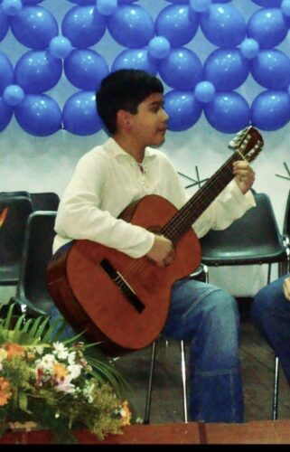 Su primer instrumento fue el cuatro, en sus propias palabras “una especie de ukelele venezolano”. Luego vinieron la mandolina, la guitarra, la flauta… Fotografía: archivo personal de Diego Díaz (cortesía).