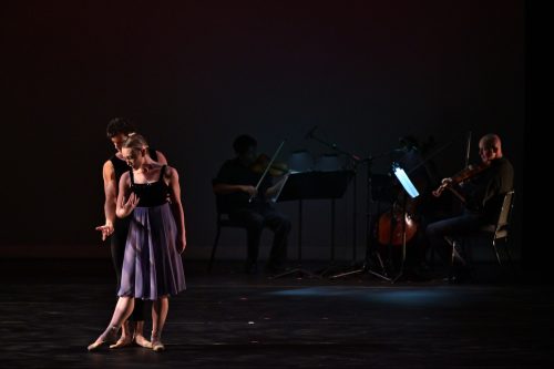 “Around Midnight”, el ballet presentado al inicio, cuenta con la música de Erno Dohnányi y fue interpretada por tres parejas, acompañadas en vivo -y con esmero- por Tony Seepersad (violín), Ross DeBardelaben (viola) y Ashley Garrison (cello). Presentar al menos una obra con bailarines y músicos compartiendo el escenario es algo que DDTM ha tratado de incorporar en cada una de sus presentaciones.
