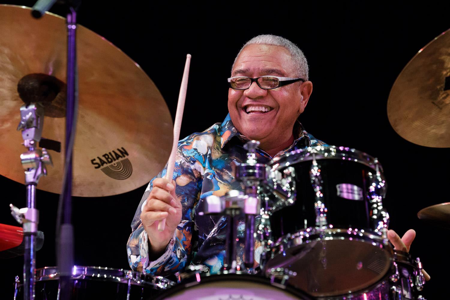 El mítico baterista Ignacio Berroa. Fotografía: Jim Levitt (cortesía de Dranoff International 2 Piano Foundation).