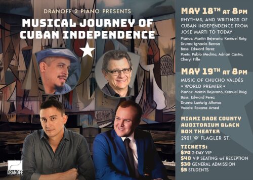 “Dranoff siempre está buscando programar música maravillosa y con significado”, destaca Martín Bejerano, pianista, compositor, profesor y director artístico de la fundación y del doble concierto. “La presentación de conciertos que celebran la independencia cubana tiene un gran significado para esta comunidad, y el material de presentación que abarca más de cien años de música cubana y afrocubana es una manera única y especial de celebrar. Creemos que presentar esta música (y la música original) en una forma nueva y moderna es importante para el crecimiento continuo de este arte”.