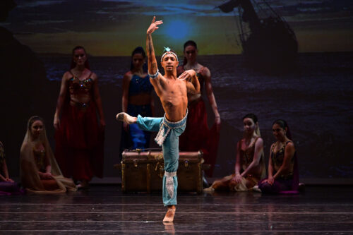 Ihosvany Rodríguez, aquí en “Le Corsaire”, bailará el pas de deux de “Coppelia” junto a Natalia Álvarez, en esta Gala del Ballet Clásico Cubano de Miami. Fotografía: Simon Soong (cortesía del Ballet Clásico Cubano de Miami).