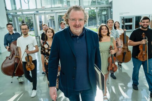 Stéphane Denève, junto a becarios de la New World Symphony. Fotografía: Alex Markow (cortesía del Arsht Center).