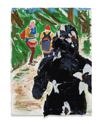 William Osorio, Caminante, son tus huellas el camino y nada más X, 2024, óleo en barra y textil sobre papel, 15 x 11 pulgadas, 38,1 x 27,94 cm. Colección de Jorge M. Pérez. (Foto: Sofía Guerra, Cortesía de LnS Gallery)