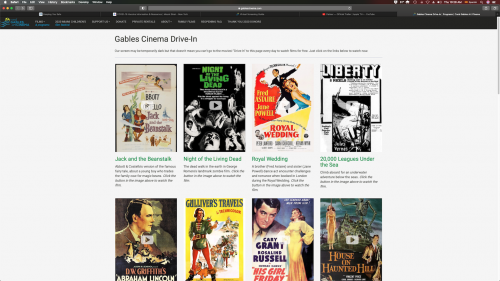 Captura de pantalla de website Drive-In con programación gratuita de clásicos del cine.