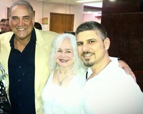 En esta imagen del archivo personal de Teresa María Rojas aparece ella flanqueada, a su derecha, por Mario Ernesto Sánchez, y por el actor y director Larry Villanueva. Foto: cortesía de Teresa María Rojas.