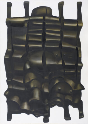 Pero la aprensión por la naturaleza de la relación sujeto-objeto, es llevada a un nivel más alto en las obras de la década de 1970. Algo apreciable en pinturas como “The Warrior” (1975) y “Armadura” (1971). Aquí hay una cosificación de la imagen pictórica. Lo tembloroso, la “carnalidad”, el pelaje de la pintura, respecto a las obras de la década anterior, se endurece y compacta, dando paso a una imagen más árida y desapacible. Son pinturas que piden ser objetos escultóricos por la intensidad, el dramatismo psicológico abstracto figurativo de apariencia tridimensional. Es una pintura que explota recursos expresivos de la neo figuración, de la abstracción pero que también híbrida elementos de la pintura conceptualista y del arte minimalista.