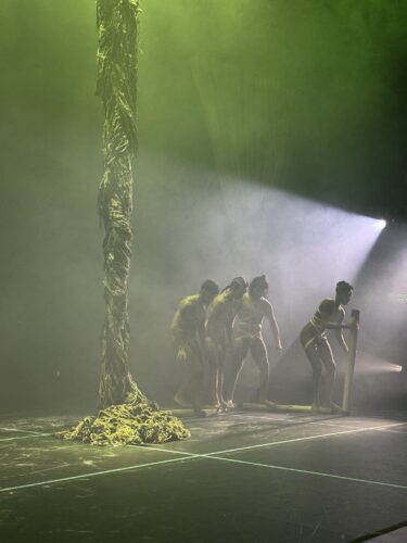 El “trenzado” del tronco de la ceiba en escena es el momento más extravagante de “Bio’Ngo”. Fotografía: Karime Arabia (cortesía)