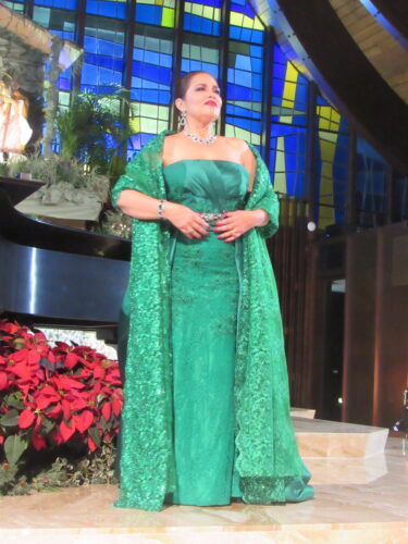 Seguidamente, la soprano Marinel Cruz entregó una muy sentida y matizada “Chi il bel sogno di Loretta” de “La Rondine”, de Puccini. Fue muy aplaudida, pero lo que habría de entusiasmar al público sería la obra a continuación: “Sempre Libera de La Traviata”, de Verdi, donde la soprano Eglise Gutiérrez, hizo alarde de sus espléndidos agudos y de sus emotivos pianos, demostrando un sólido control de sus facultades tanto vocales como dramáticas. Esta popular aria fue lógicamente una de las más aplaudidas de una noche donde los largos aplausos se sucedieron constantemente.