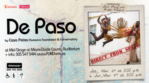 “De Paso” se presenta el 6 de noviembre a las 8:00 p.m. y el 7 de noviembre a las 3:00 p.m. en el Mid-Stage de MDCA (2901 W Flagler St., Miami, FL 33135). El costo de las entradas es $40 adultos, $35 personas mayores, $25 estudiantes y grupos $20 (personas mayores y estudiantes con identificación, asientos limitados). Los boletos pueden adquirirse en Ticketmaster, o por teléfono al (800) 745-3000 y en la taquilla del teatro, de lunes a viernes, entre 9:00 a.m. y 4:00 p.m. Para más información visite www.fundarte.us o llame al (305) 547-5414. Para reservar lugar en la Clase Magistral visite https://www.eventbrite.com/e/