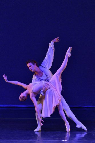 Los bailarines del Washington Ballet, Katherine Barkman y Gian Carlo Pérez, en “Diana y Acteón” de Agripina Vaganova. Fotografía: Simon Soong (cortesía)