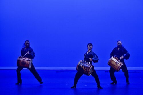 Los bailarines de Tropilla Malambo en “Malambo, Bombo, Boleadoras”, coreografía de Nicolás Rivas. Fotografía: Simon Soong (cortesía).