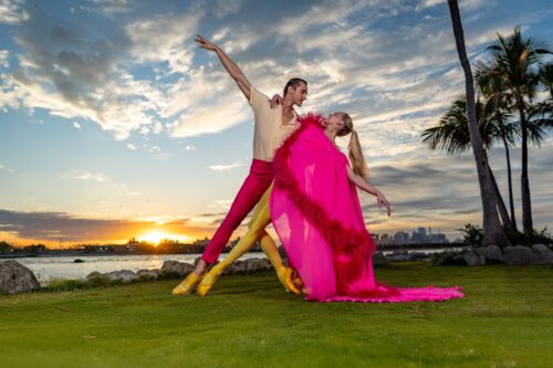 Stanislav Olshanskyi y Dawn Atkins, bailarines principales de Miami City Ballet, en una foto promocional para el programa Spring Mix en la temporada del aniversario número 40 de la compañía. Fotografía: Christian Lockerman and The Warhol Creative (cortesía de Miami City Ballet).