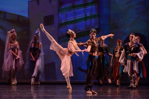 Marize Fumero, Jorge Oscar Sánchez y el cuerpo de baile del Cuban Classical Ballet of Miami en “Le Corsaire”. Fotografía: Simon Soong (cortesía de Cuban Classical Ballet of Miami).