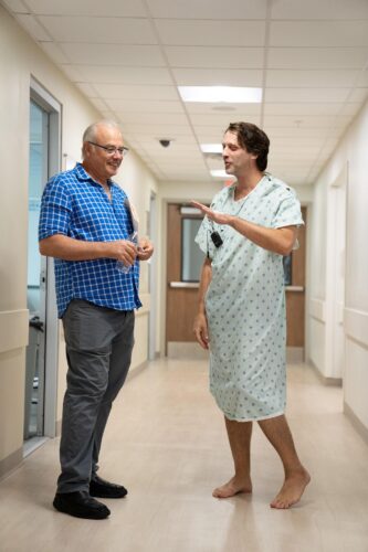 El director Tom Musca y Caleb Scott (Ivan) protagonista del cortometraje “Dying to Direct”, conversando durante la filmación. Fotografía cortesía del 40th MDC Miami Film Festival.