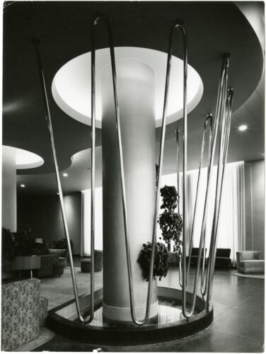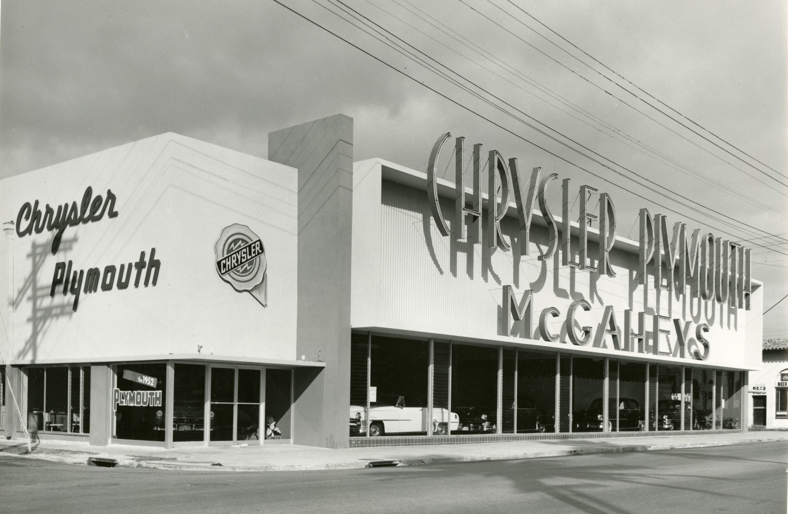 Imagen del concesionario Chrysler Plymouth de McGahey en Coral Gables, diseñado por Edwin T. Reeder Associates. Fotografía: Rudi Rada (cortesía del HistoryMiami Museum).