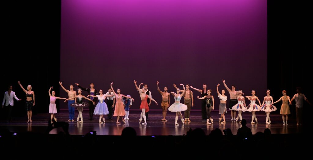 Todos los artistas participantes en la Gala de Clausura de Estrellas del XXVII International Ballet Festival of Miami Festival (IBFM), un evento que regresa en agosto de 2023. Fotografía: Simon Soong (cortesía de Miami Hispanic Ballet / IBFM)