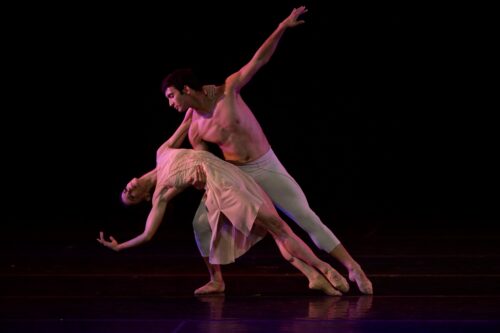 Emily Bromberg y Ariel Morilla, de Dimensions Dance Theatre of Miami, en “Apollo y Daphne”, durante el 30.º Festival Internacional de Ballet de Miami, cuyas galas se celebraron en The Fillmore Miami Beach. Fotografía: Simon Soong (cortesía de IBFM).