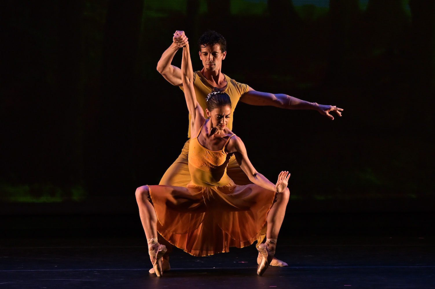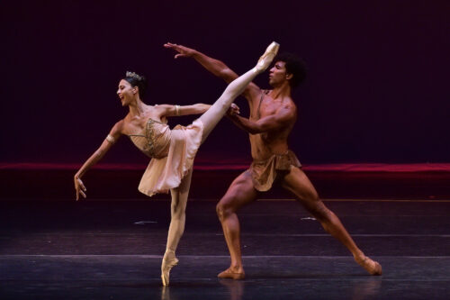 Los bailarines del Washington Ballet, Katherine Barkman y Gian Carlo Pérez, en “Diana y Acteón” de Agripina Vaganova. Fotografía: Simon Soong (cortesía)
