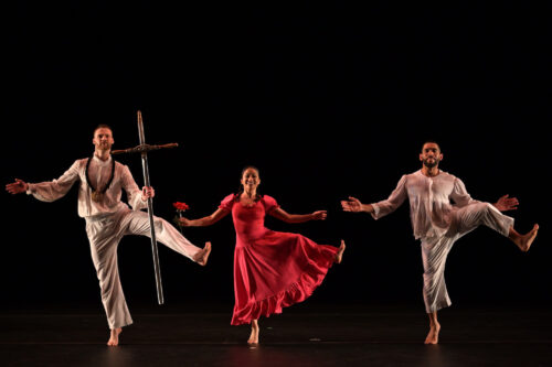 Matthew Heufner, Allyn Ginns Ayers y Anthony Velázquez en “La Malinche”, de José Limón. Fotografía: Simon Soong (cortesía)