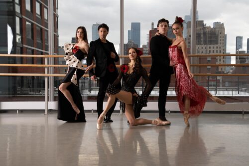 Los bailarines del American Ballet Theatre que participan en la gala “Herman Cornejo & Ballet Stars” (de izquierda a derecha) Cassandra Trenary, Herman Cornejo, Christine Shevchenko, Jake Roxander y Skylar Brandt. Fotografía: Alex Di Matta (cortesía).