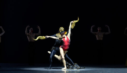Cameron Catazaro (el Destino) y Dawn Atkins (Carmen) en su primera aparición juntos, coreografía de Annabelle López Ochoa. Fotografía: Alexander Iziliaev (cortesía de Miami City Ballet).