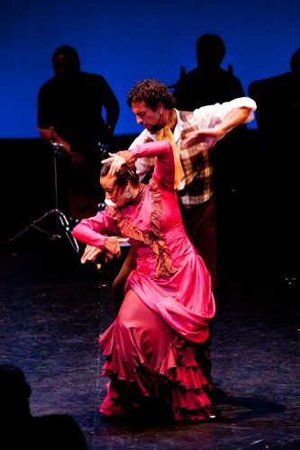 La Truco como Hedda Gabler y José Moro como Eilert Lovborg en “Directo Al Corazón” de Ballet Flamenco La Rosa, puesta en escena de Ilisa Rosal. Fotografía: Jenny Abreu (cortesía)