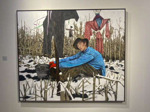 Hernan Bas. “Plotting a muder”, 2024. Acrílico sobre lino. 2024. 72 x 84 In. 182 x 213 cm. Fredric Snitzer. Art Basel Miami Beach. Fotografía: D. Matos (cortesía).