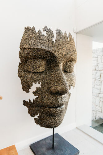 Marcó Olivier. “Mother of Pearl” (2023). Materiales reciclados, 68 x 47 x 15 pulgadas. Marco Olivier Collection. Feria Spectrum, Miami. Mana Wynwood Convention Center. Fotografía: Marcó Olivier Collection (cortesía)