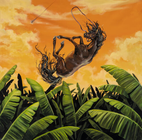 Franz Caba. “Cayendo en gracia” (2022) 152.4 x 152.4 cm, Acrílico sobre lienzo. Lucy García. Sección Main Project. Feria Pinta, 2024. Fotografía: Pinta, Miami 2024 (cortesía)