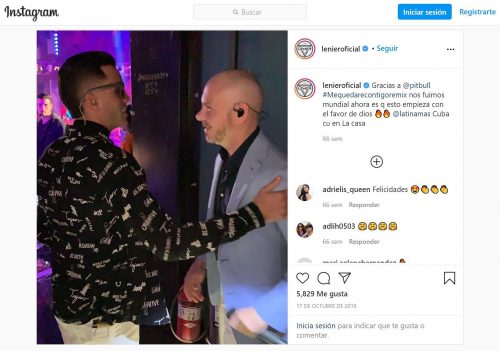 Antes de firmar con Mr. 305 Records, ya Lenier trabajaba con Pitbull, como indica este mensaje de octubre de 2019 hablando del éxito “Me quedaré contigo”. Fotografía: captura de pantalla.