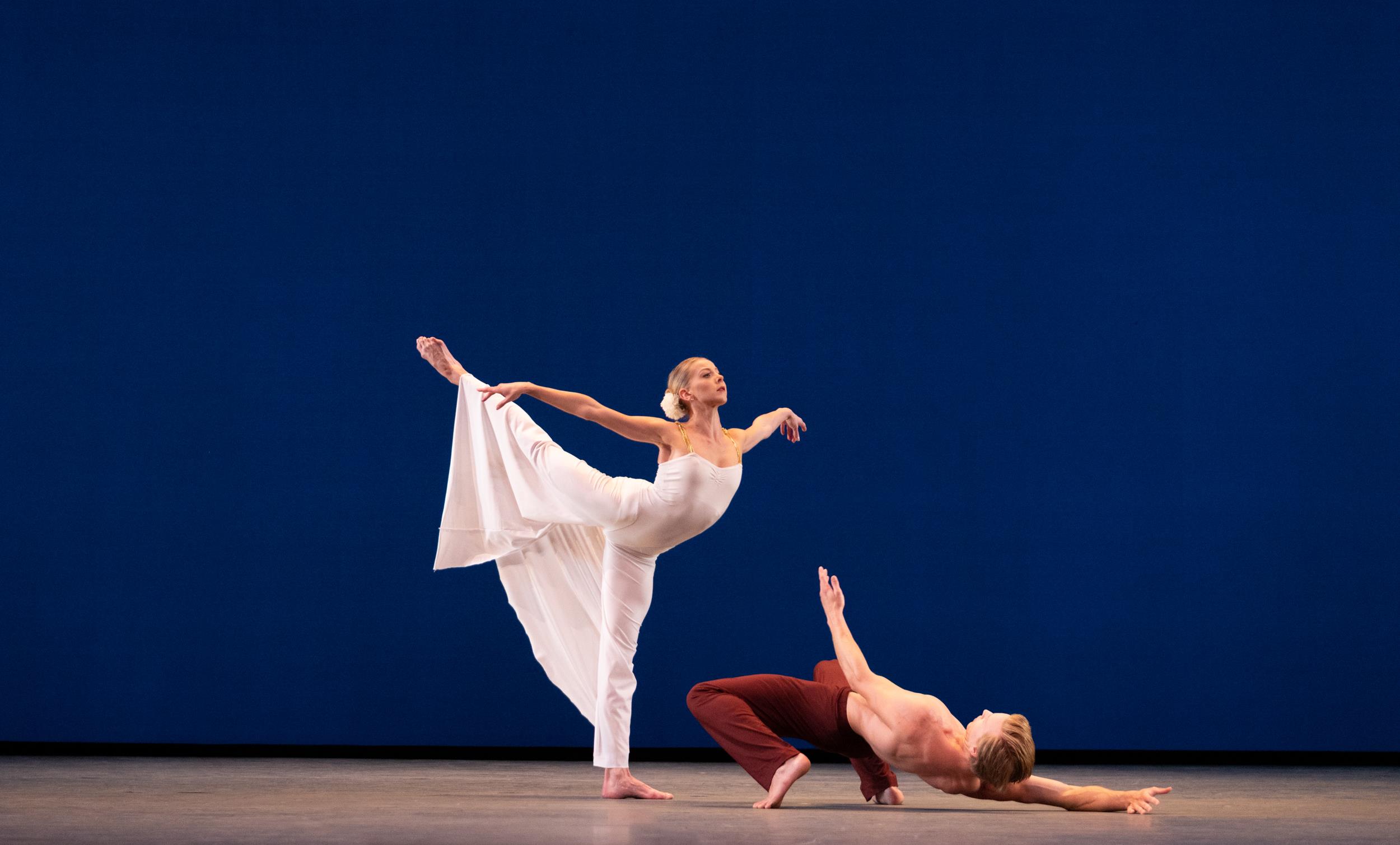 El ballet comenzó con ambos bailarines en leotardos rosas y Hannah Fischer de pie sobre Cameron Catazaro, quien yacía sobre el escenario. Ella primero se irguió y luego se arqueó sobre él. Catazaro la sostuvo suspendida antes de que ambos se separaran y giraran para abrazarse. Gamonet extendió este motivo a lo largo del pas de deux, con Catazaro levantando repetidamente a Fischer, su cuerpo pareciendo ingrávido en el espacio iluminado de azul, antes de envolverla nuevamente en sus brazos.