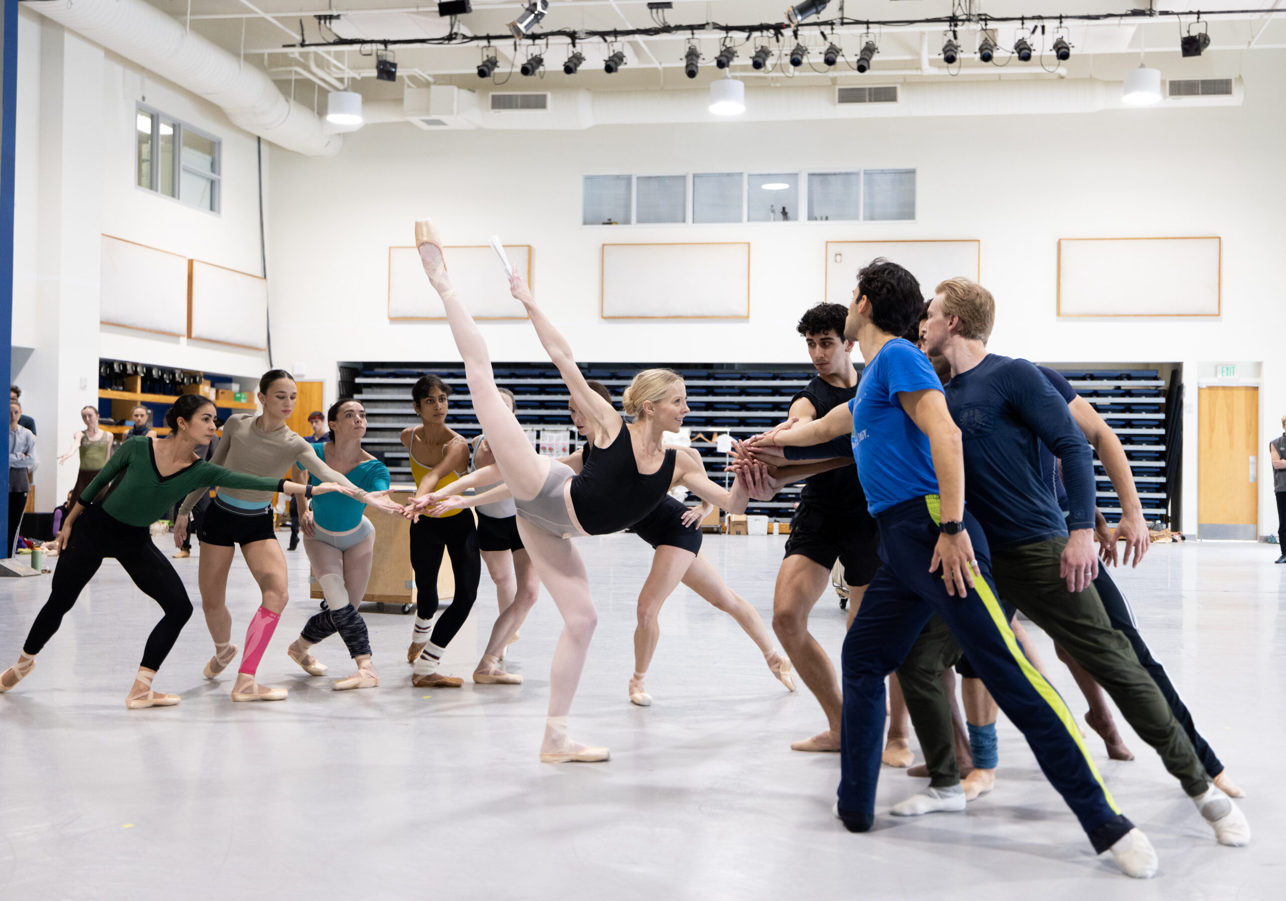 Los bailarines de Miami City Ballet (con Dawn Atkins al centro) ensayando “Carmen”, coreografía de Annabelle López Ochoa. Fotografía: Alexander Iziliaev (cortesía de Miami City Ballet).