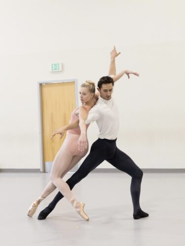 Katia Carranza y Cameron Catazaro ensayando “Delight”, coreografía de Ricardo Amarante. Fotografía: Alexander Iziliaev (cortesía de Miami City Ballet).