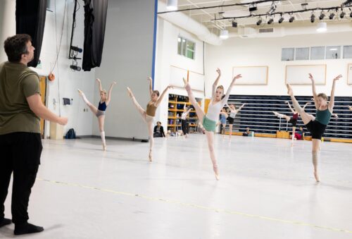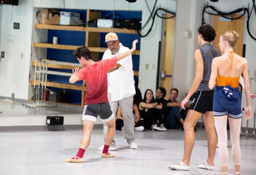 El coreógrafo Ricardo Amarante con los bailarines de Miami City Ballet en un ensayo de “Delight”. Fotografía: Alexander Iziliaev (cortesía de Miami City Ballet).