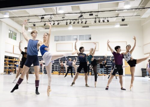 Los bailarines de Miami City Ballet ensayando “Agon”, coreografía de George Balanchine. Fotografía: Alexander Iziliaev (cortesía de Miami City Ballet)