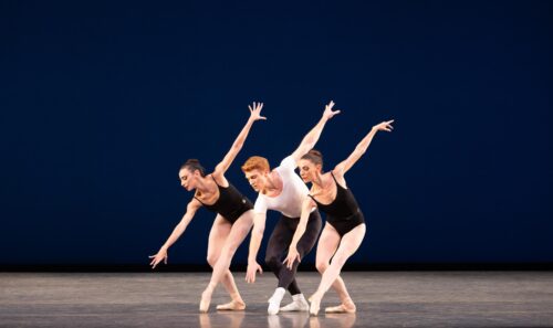 Nathalia Arja, Alexander Peters y Ashley Knox en “Agon”, coreografía de George Balanchine. Fotografía: Alexander Iziliaev (cortesía de Miami City Ballet).
